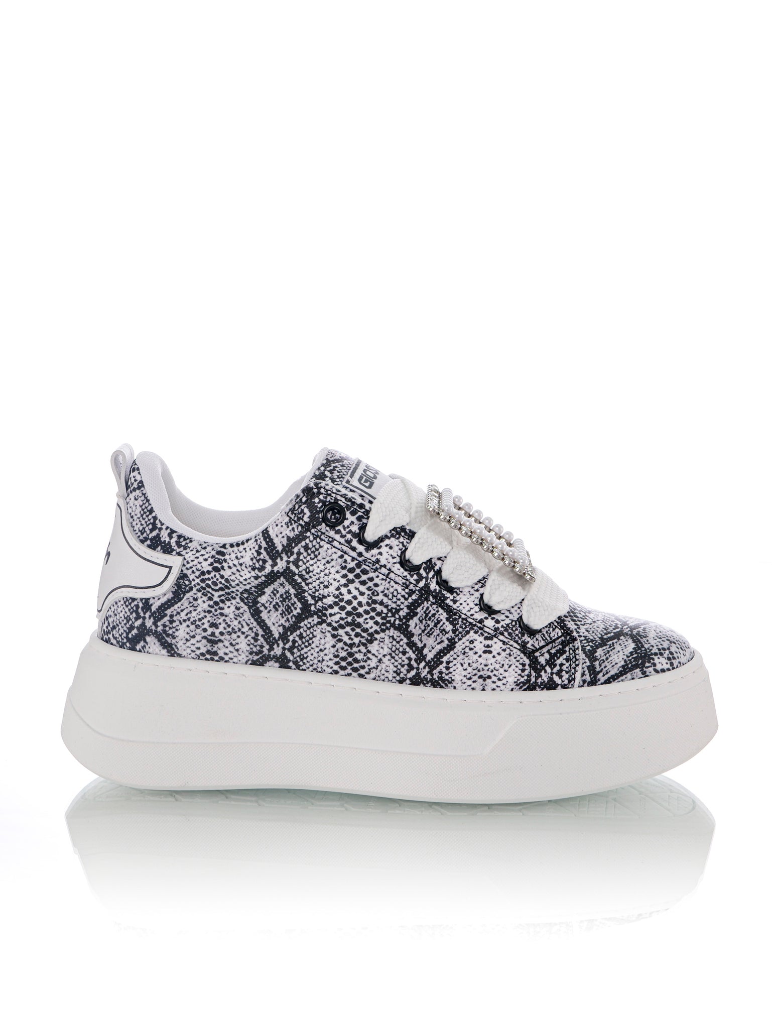 The Pearl Pitonato is much more than a simple shoe, it is a real jewel. Between the laces, a buckle decorated with pearls and rhinestones immediately catches the eye, giving a touch of inimitable luxury. At the heel, a removable accessory of pearls and rhinestones completes the refined aesthetic, adding an element of glamour to your every step. This feature allows you to customize the shoe according to your style and the occasion.