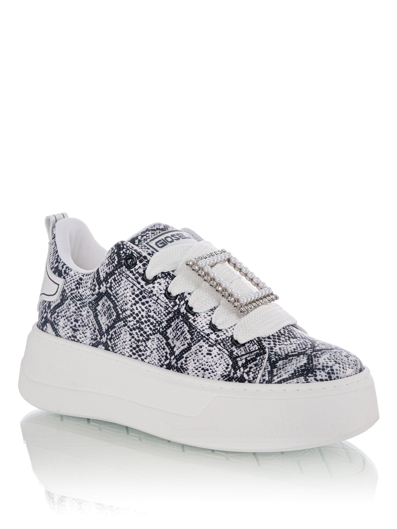 With the Pearl Pitonato , Gioselin redefines the concept of trendy footwear, combining the boldness of the python print with the delicacy of pearls and the brilliance of rhinestones. Experience the pleasure of wearing a shoe that combines comfort, style and versatility, making each of your outfits unique and unforgettable.