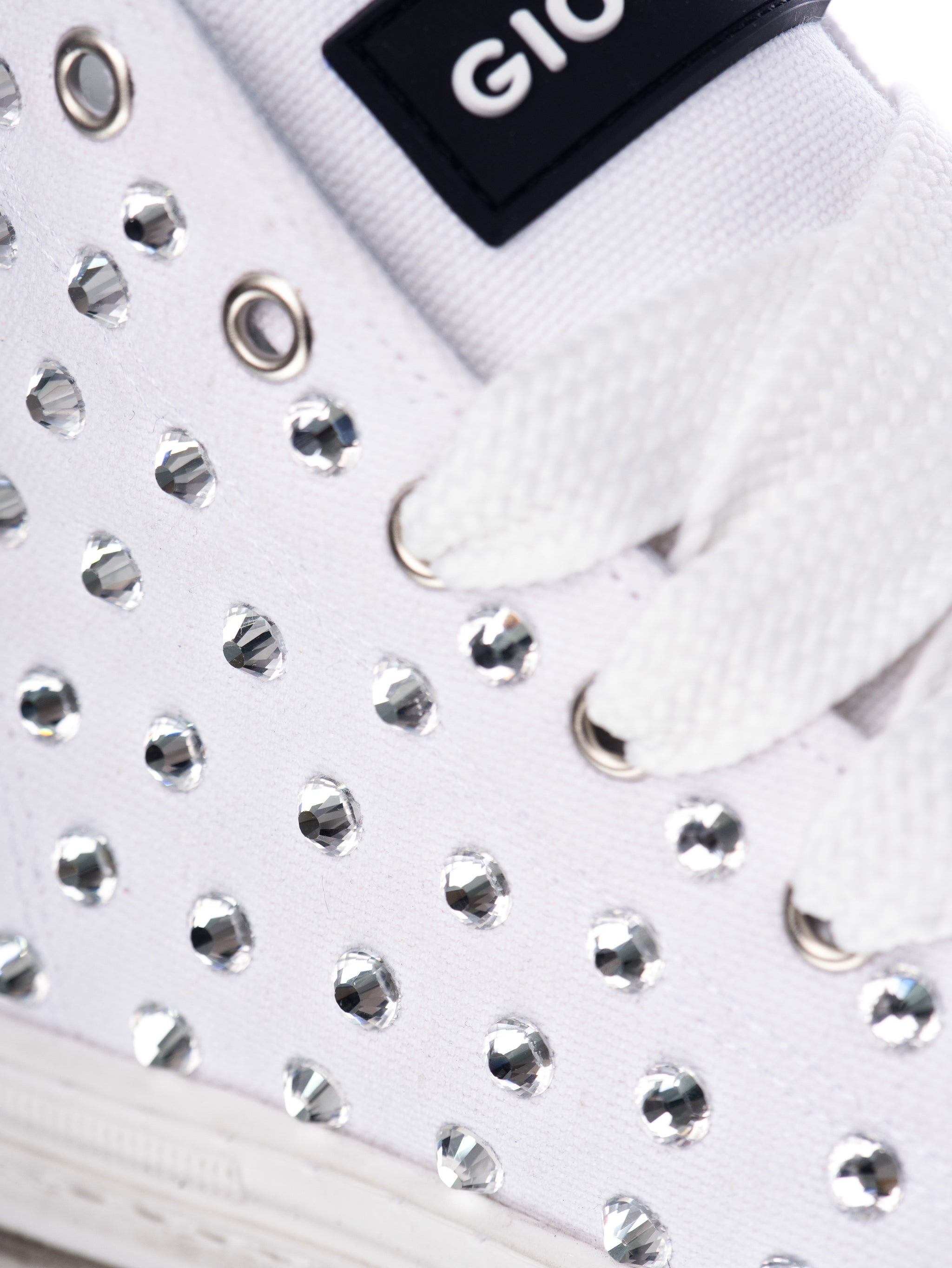 Minimal, refined and incredibly bright: the Play Diamond Bianco is the perfect sneaker for those who want to combine style and exclusivity. The pure white fabric is embellished with sparkling crystal details, transforming a timeless classic into a fashion icon with a strong character.