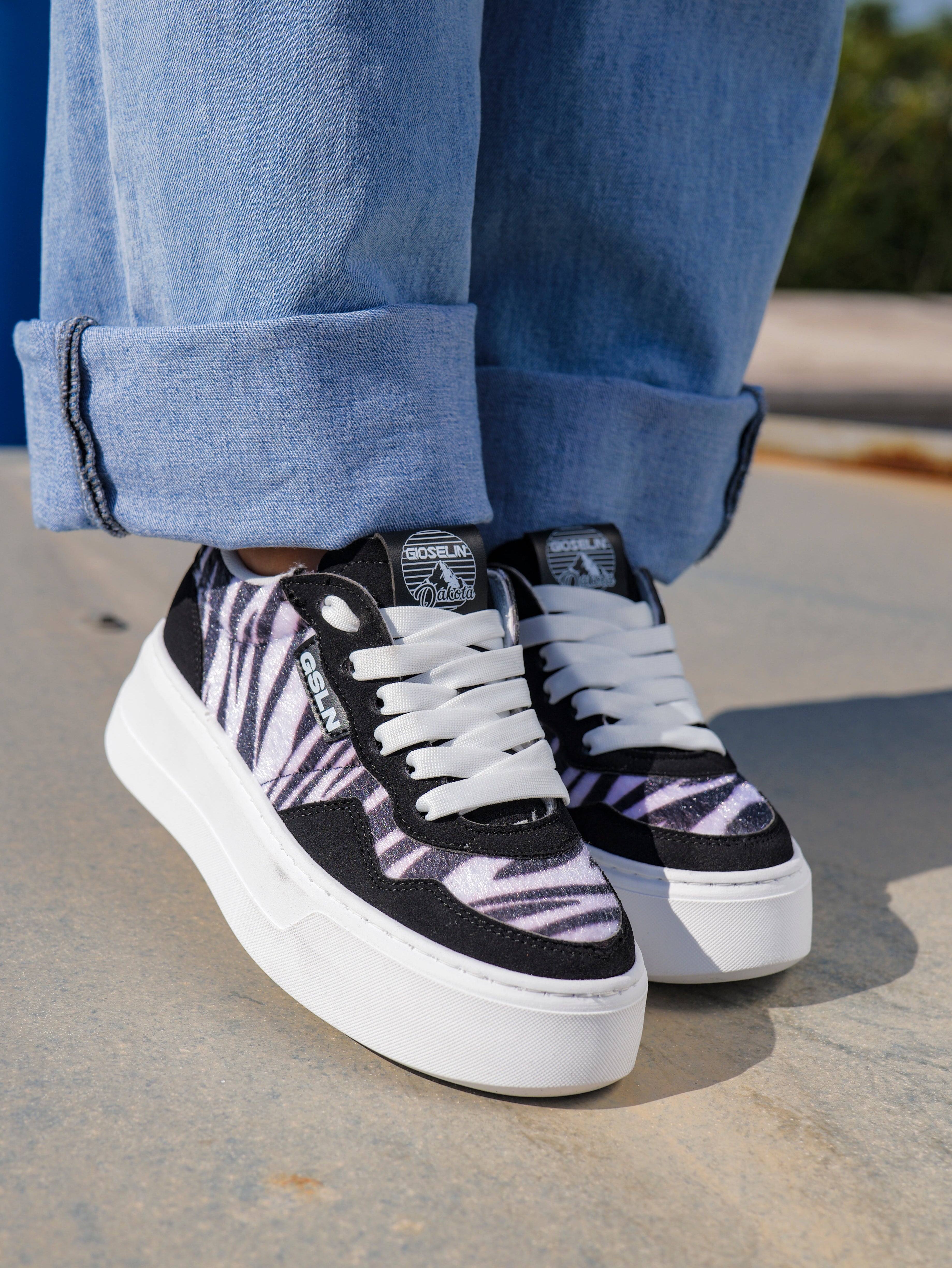 A wild soul with a sophisticated touch: Dakota Wild Zebra is the sneaker designed for those who love to break the mold with style. The vibrant and magnetic zebra pattern makes every step an explosion of character and originality. The mix of intense and delicate hues creates a bold yet harmonious visual effect, perfect for those who don't want to go unnoticed.