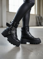 Ogni elemento è pensato per un look protagonista: dagli inserti metal, ai lacci frontali, fino alla zip laterale che rende la calzata pratica e veloce senza rinunciare allo stile.