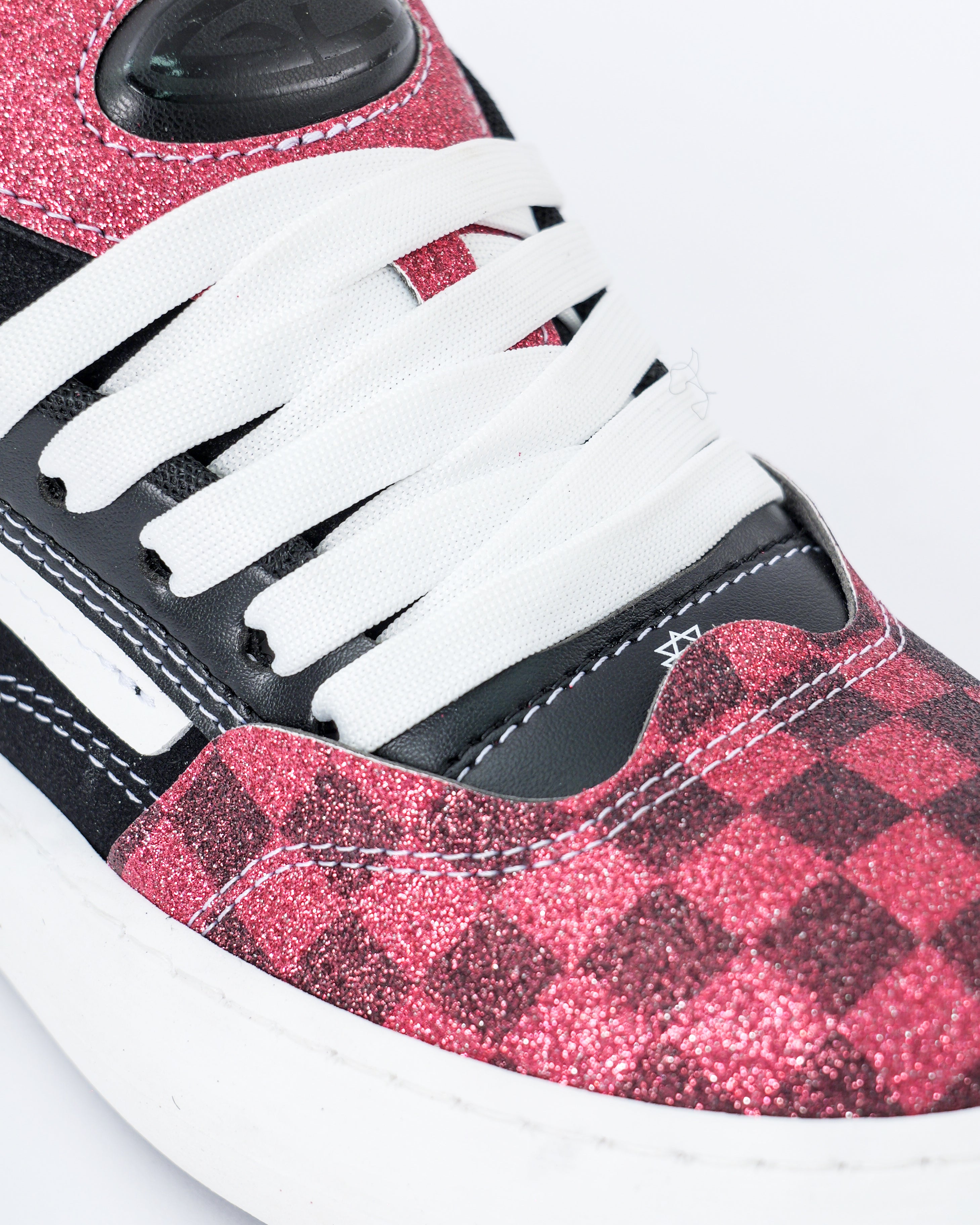 Bold, brilliant, and deeply glamorous: the SLIDE Ruby Check is the sneaker that lights up every outfit with an explosion of pink and fuchsia glitter in a checkered pattern. Designed for strong, dynamic women, always ready to conquer the stage with a bold and unmistakable look.
