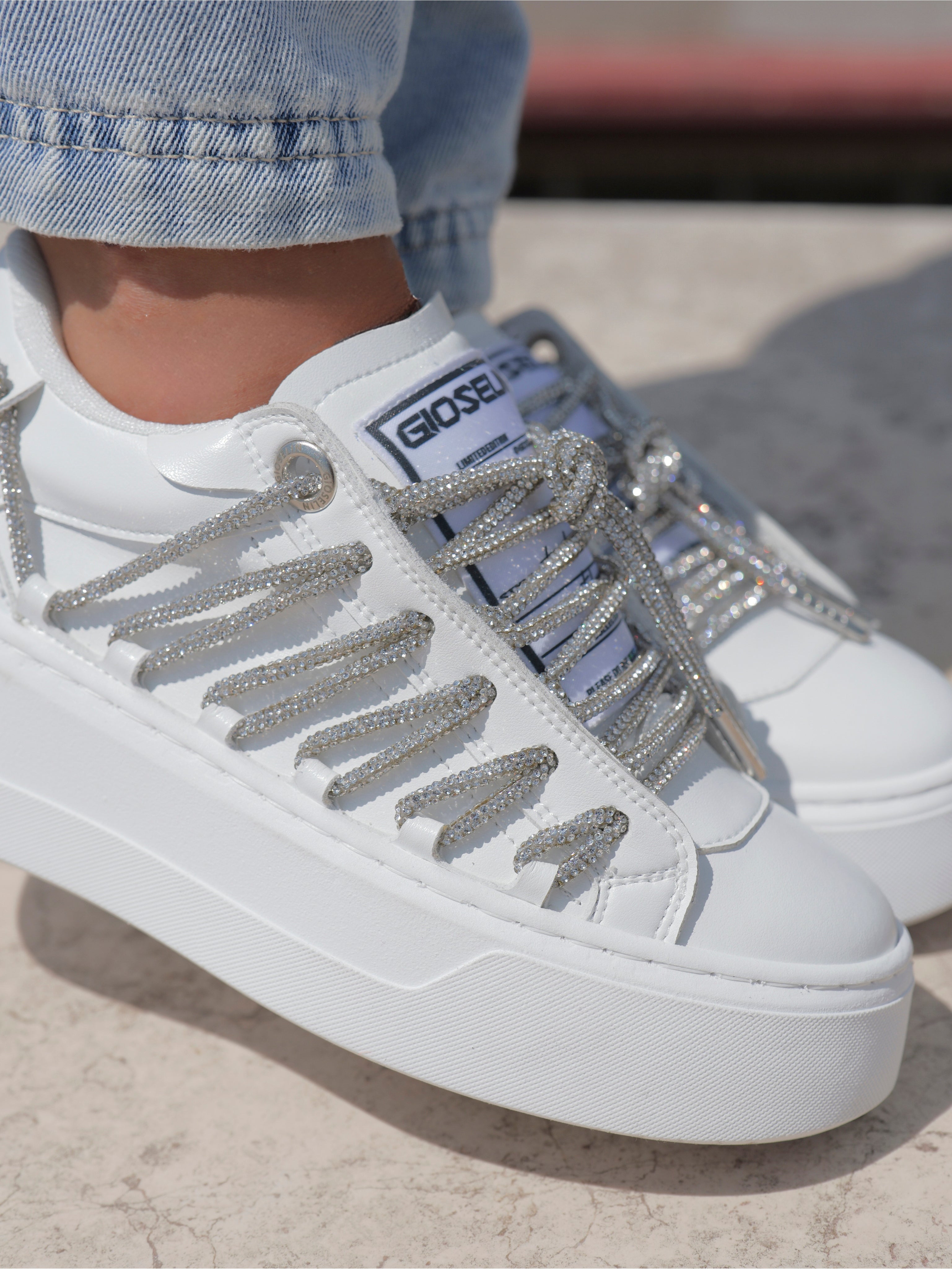 Gioselin presents SPAZIALE AW - Diamond Bianca , the winter evolution of the sneaker that has conquered every urban runway. A shoe designed for those who accept no compromise between comfort, style, and boldness. An explosion of light that keeps pace with you, in every season.
