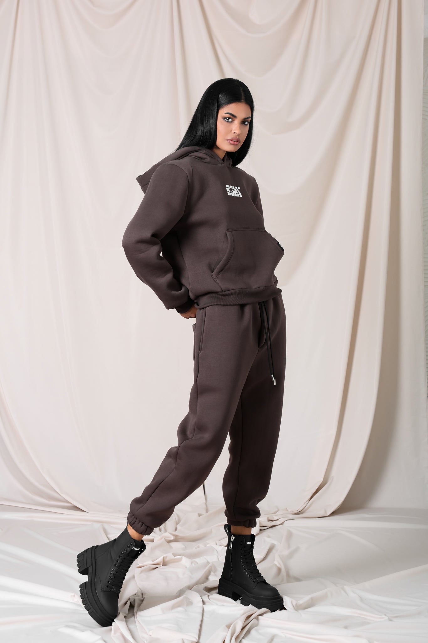 The Brown Eyes Tracksuit combines comfort and urban style in a unique piece, perfect for the winter season. Crafted from warm fabric with a fleece interior, it's designed to be practical and stylish on the coldest days.