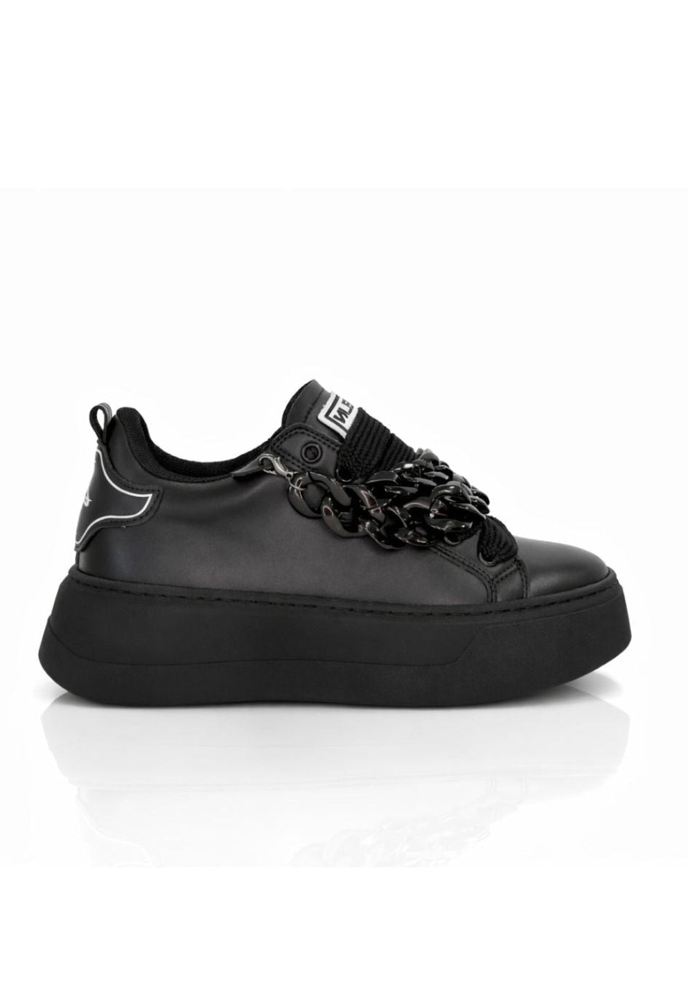 Il vero protagonista è l’iconica catena tono su tono, applicata lateralmente come accessorio decorativo, che dona alla scarpa un look sofisticato e moderno. Questo dettaglio esclusivo arricchisce la silhouette con un tocco di personalità senza rinunciare all’armonia delle linee pulite.