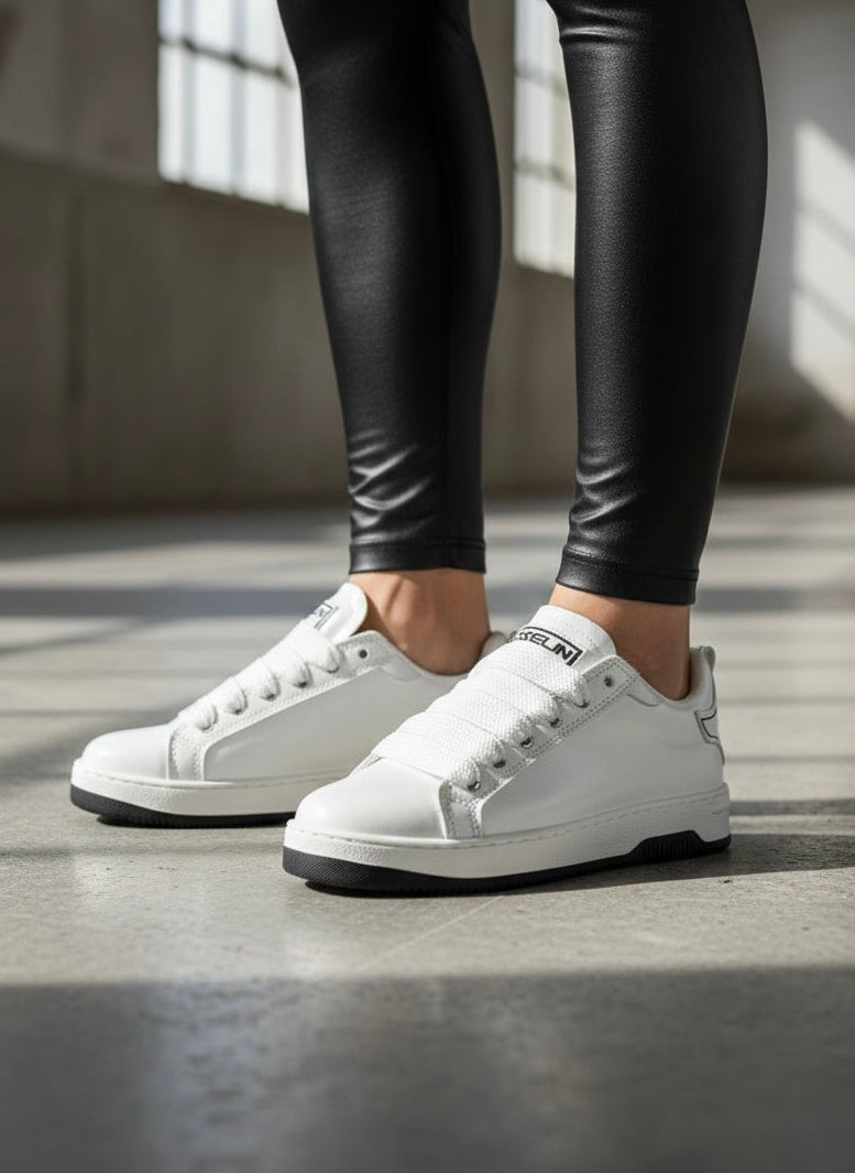 La tomaia total white, dalle linee armoniose e contemporanee, esprime un’estetica raffinata e versatile, perfetta per accompagnare ogni look urbano con naturalezza. Il profilo low-cut slancia la figura, mentre la struttura bilanciata garantisce comfort e stabilità per un utilizzo quotidiano, dal mattino alla sera.