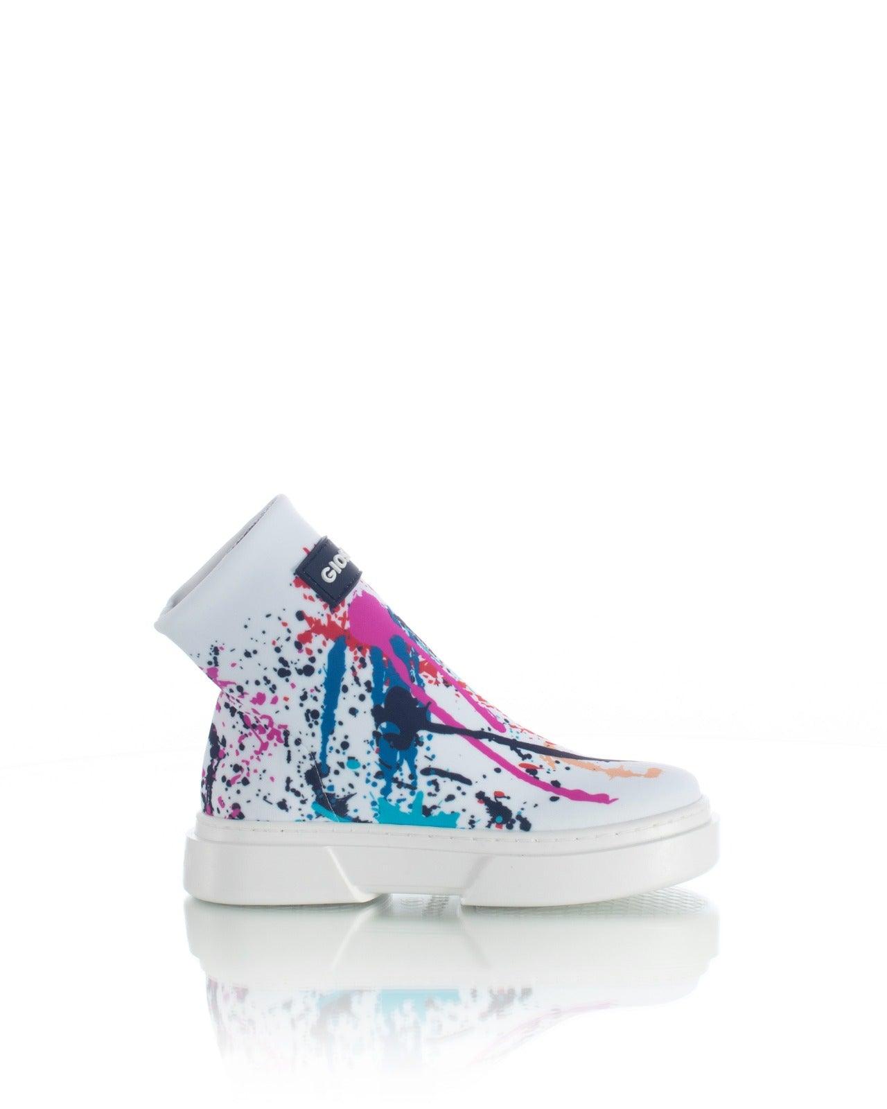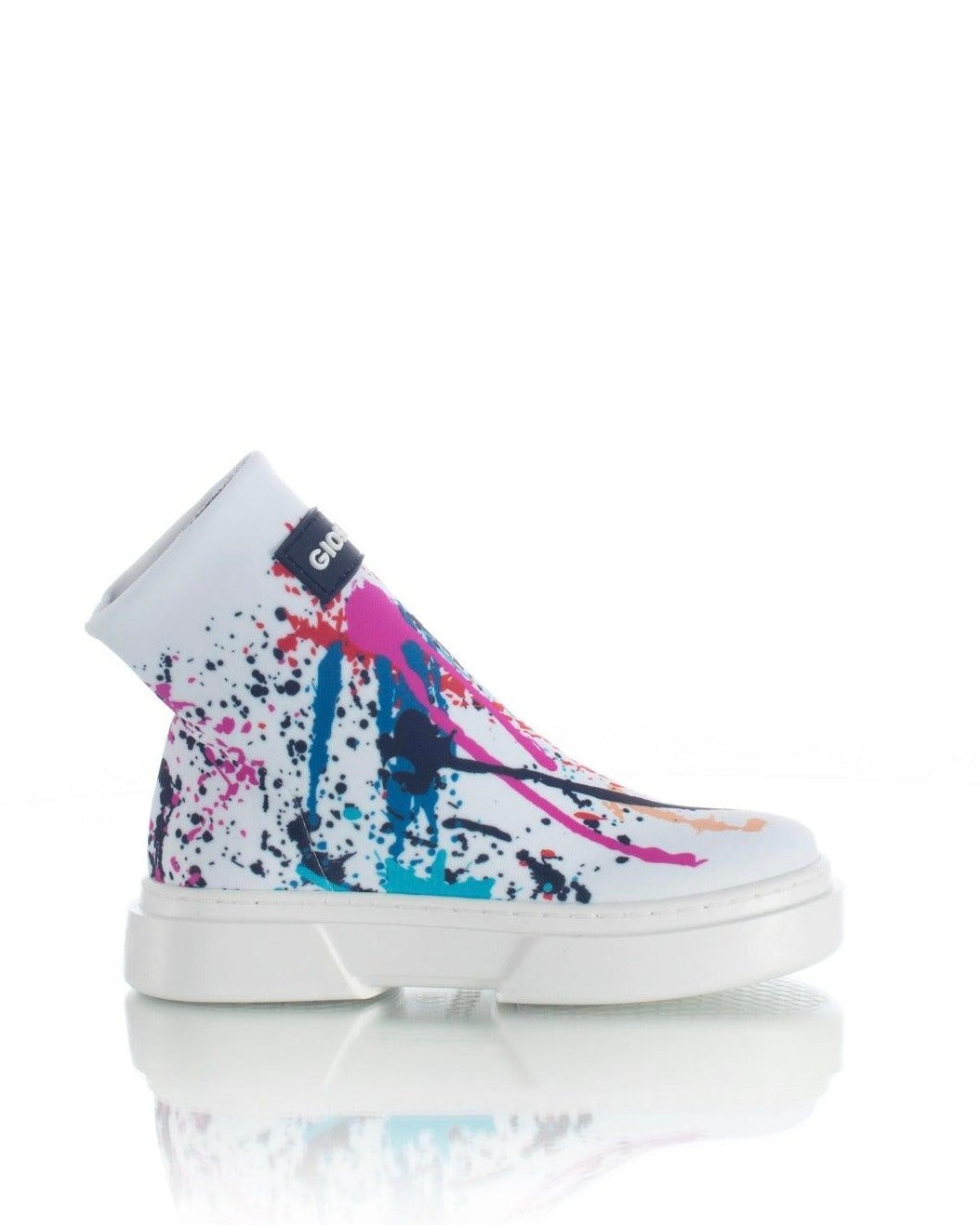 These sneakers are extremely trendy, perfect for your child who loves to stand out with a unique style. With their graffiti effect and explosion of bright colours, these shoes are a true work of art for your little one's feet. Every step becomes a walking work of art.
