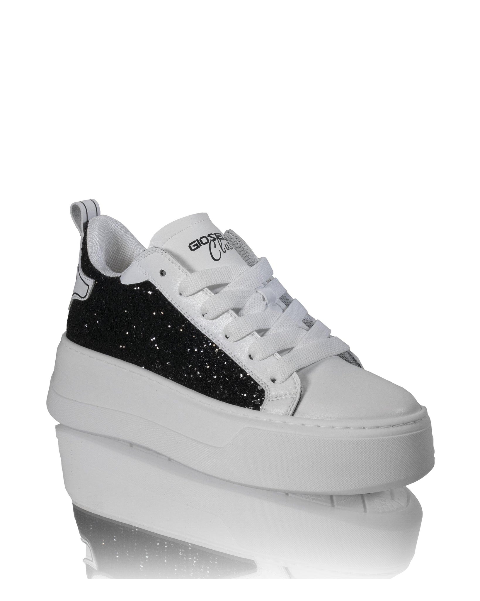 In summary, these white sneakers with black glitter details are the ideal choice for those who want a touch of elegance and glamor in their wardrobe. Wear them and get ready to make a fashion statement that won't go unnoticed.omma.