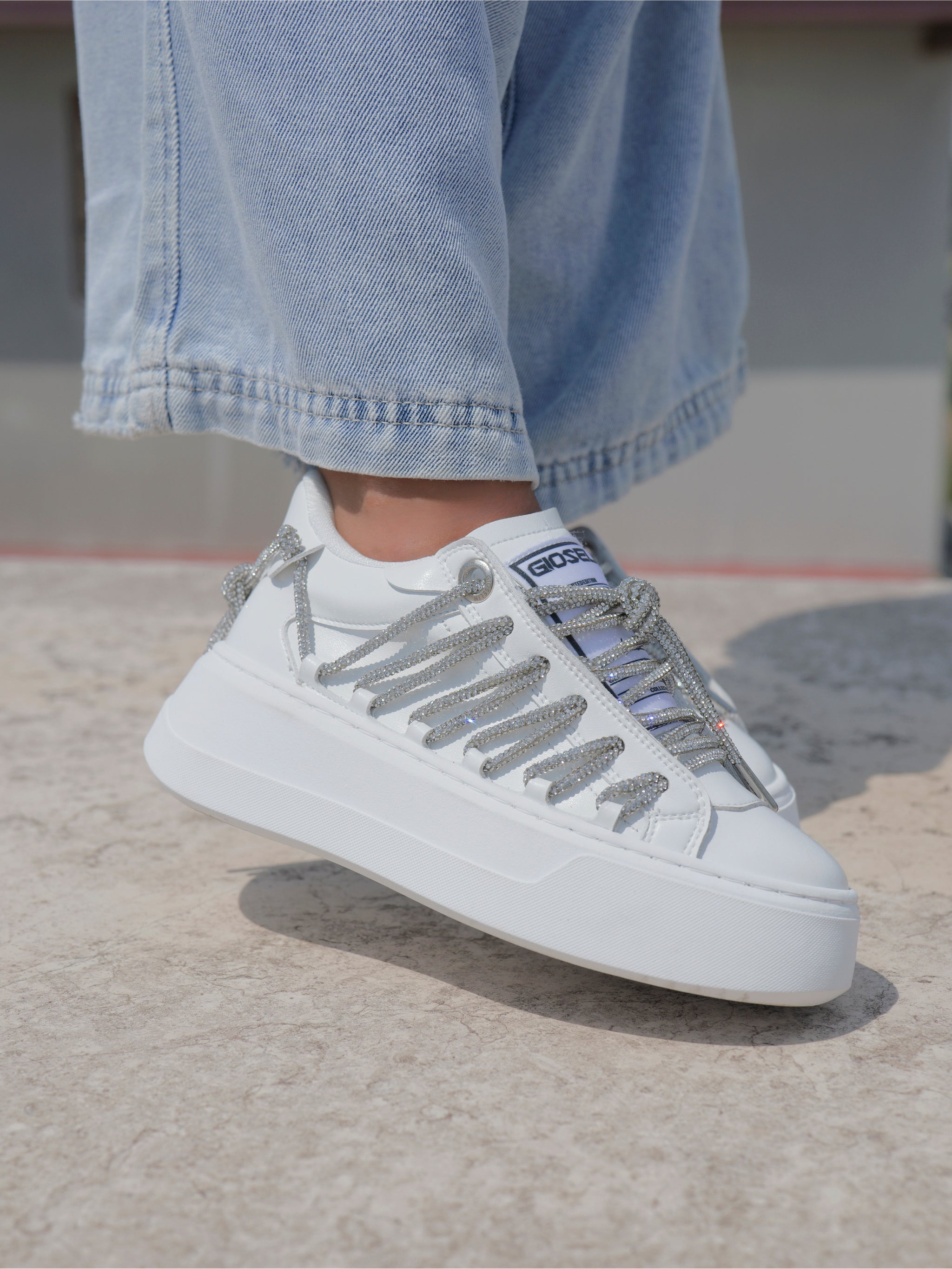 Gioselin presents SPAZIALE AW - Diamond Bianca , the winter evolution of the sneaker that has conquered every urban runway. A shoe designed for those who accept no compromise between comfort, style, and boldness. An explosion of light that keeps pace with you, in every season.