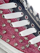 If you want a unique and bold style that will capture attention in every situation, the Pink Glitter Studded Sneakers from the new collection are the ideal choice. With these sneakers, you can never go wrong, because a touch of sparkle and a pinch of originality can make the difference in your wardrobe.