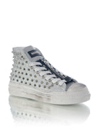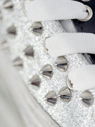 If you want a unique and bold style that will capture attention in every situation, the Glitter Silver Studded Sneakers from the new collection are the ideal choice. With these sneakers, you can never go wrong, because a touch of sparkle and a pinch of originality can make the difference in your wardrobe.
