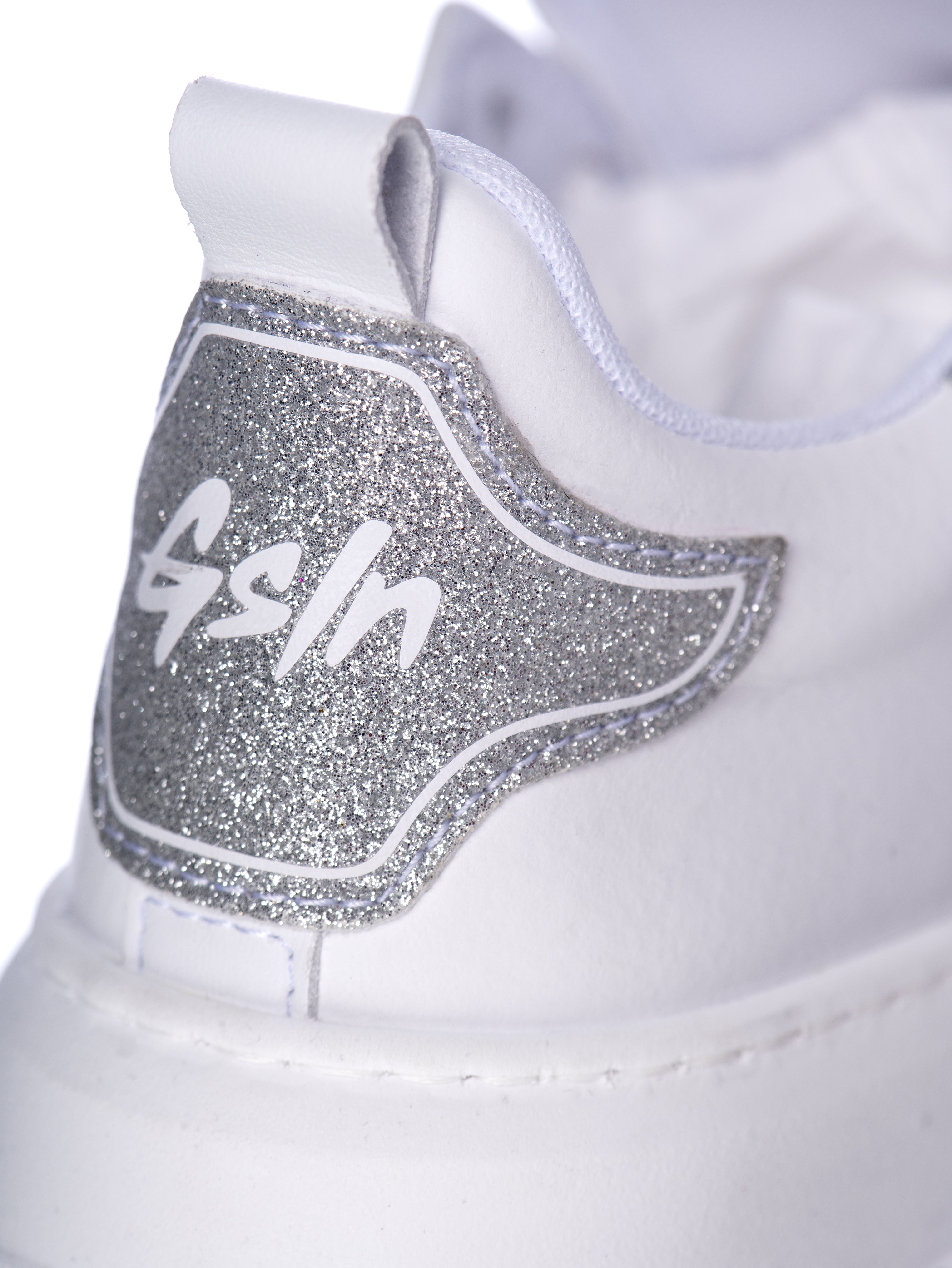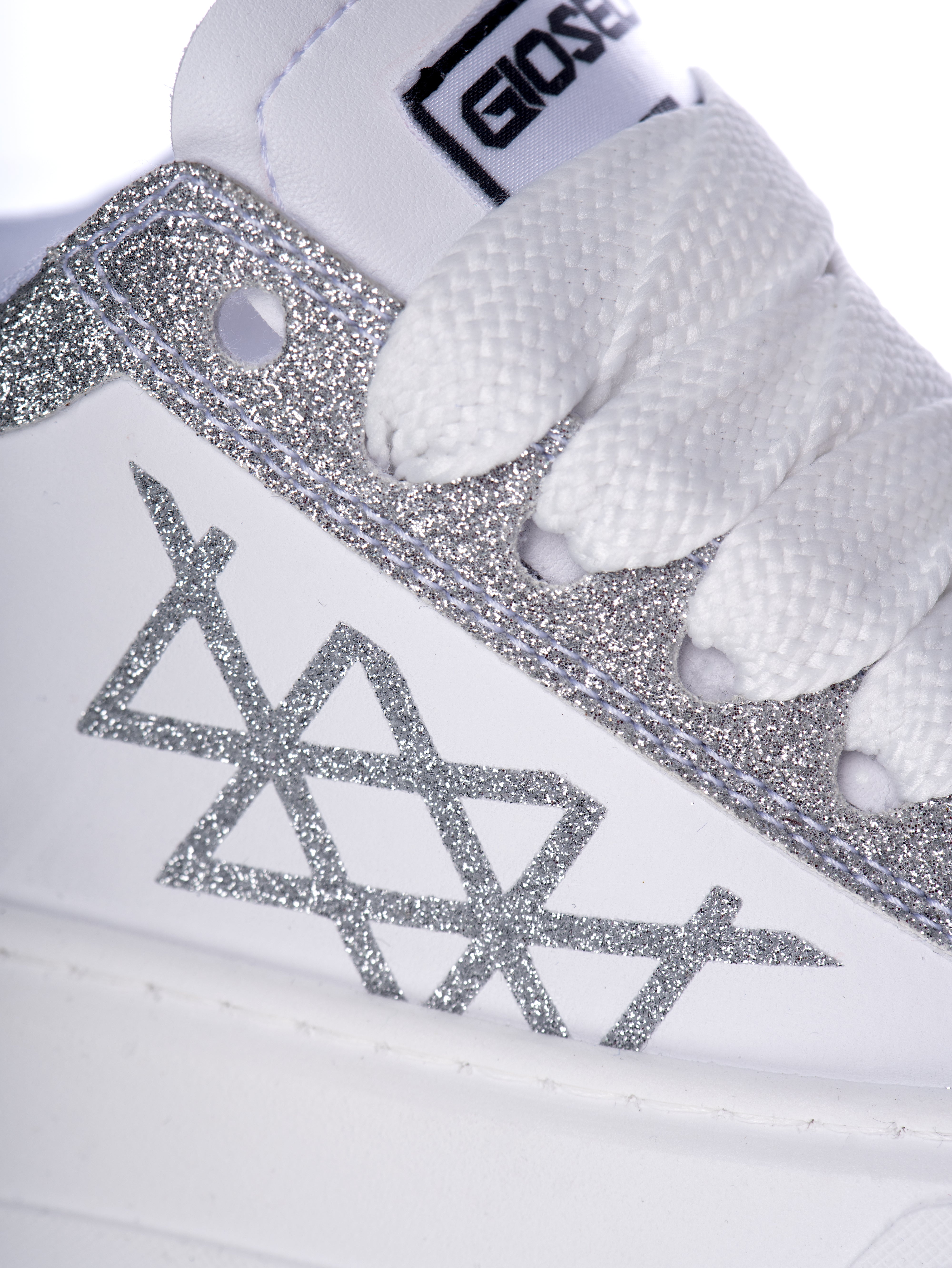 Und wir dürfen die funkelnden Details nicht vergessen, die Bridge einen Hauch von Magie verleihen. Mit zarten Glitzerdetails erstrahlt dieser Schuh in einer aufmerksamkeitsstarken Leuchtkraft, die Ihre mutige, einzigartige Persönlichkeit widerspiegelt. Gioselins unverwechselbares Logo, ein Symbol für kompromisslose Qualität und Stil, wird in ein glitzerndes Kunstwerk verwandelt und fachmännisch in den Schuh eingearbeitet.