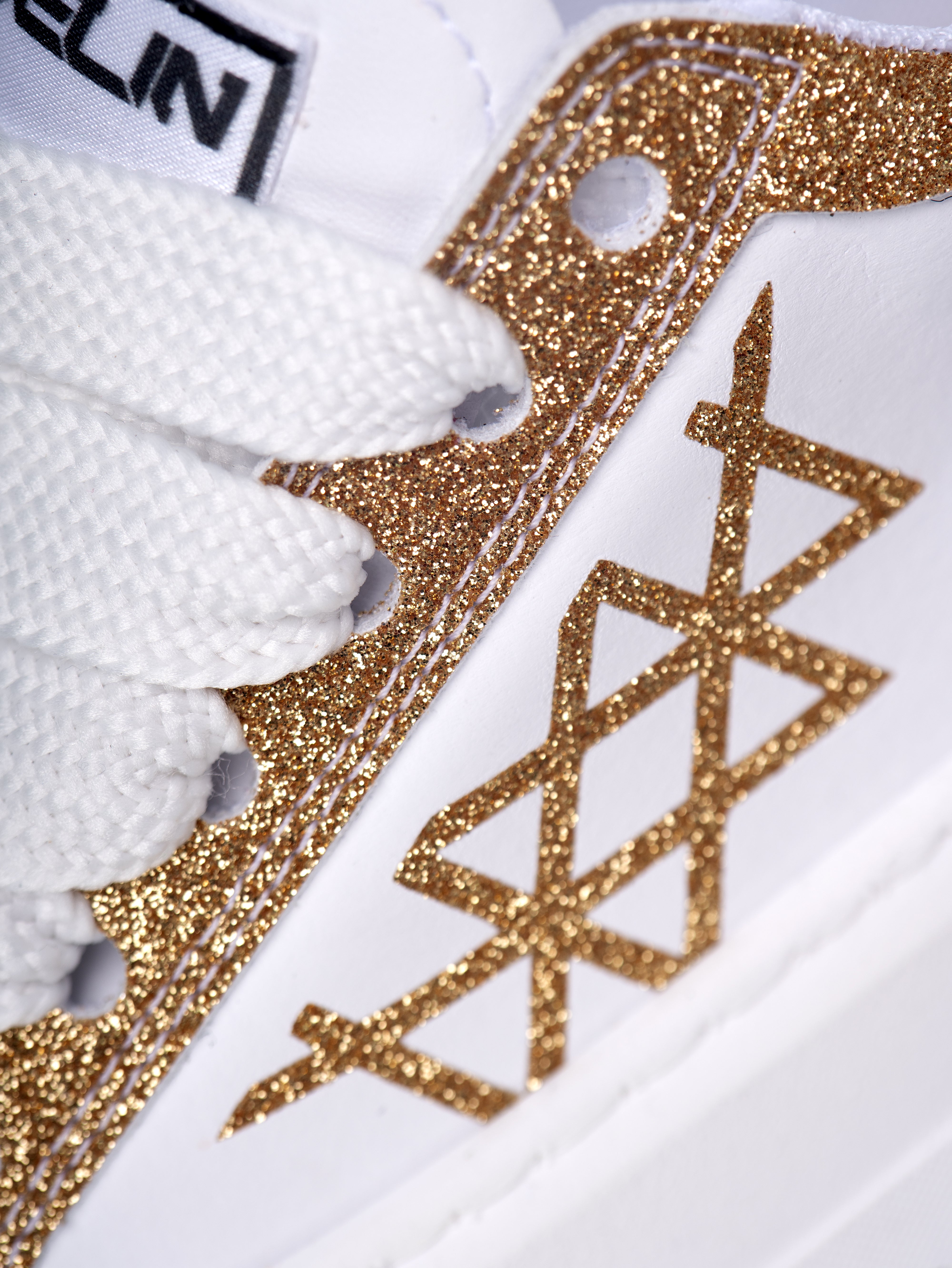 And we can't forget the sparkling details that add a touch of magic to Bridge. Featuring delicate glitter detailing, this shoe shines with a brightness that captures attention and reflects your bold, unique personality. Gioselin 's distinctive logo, an emblem of uncompromising quality and style, is transformed into a glittering work of art, expertly set into the shoe.