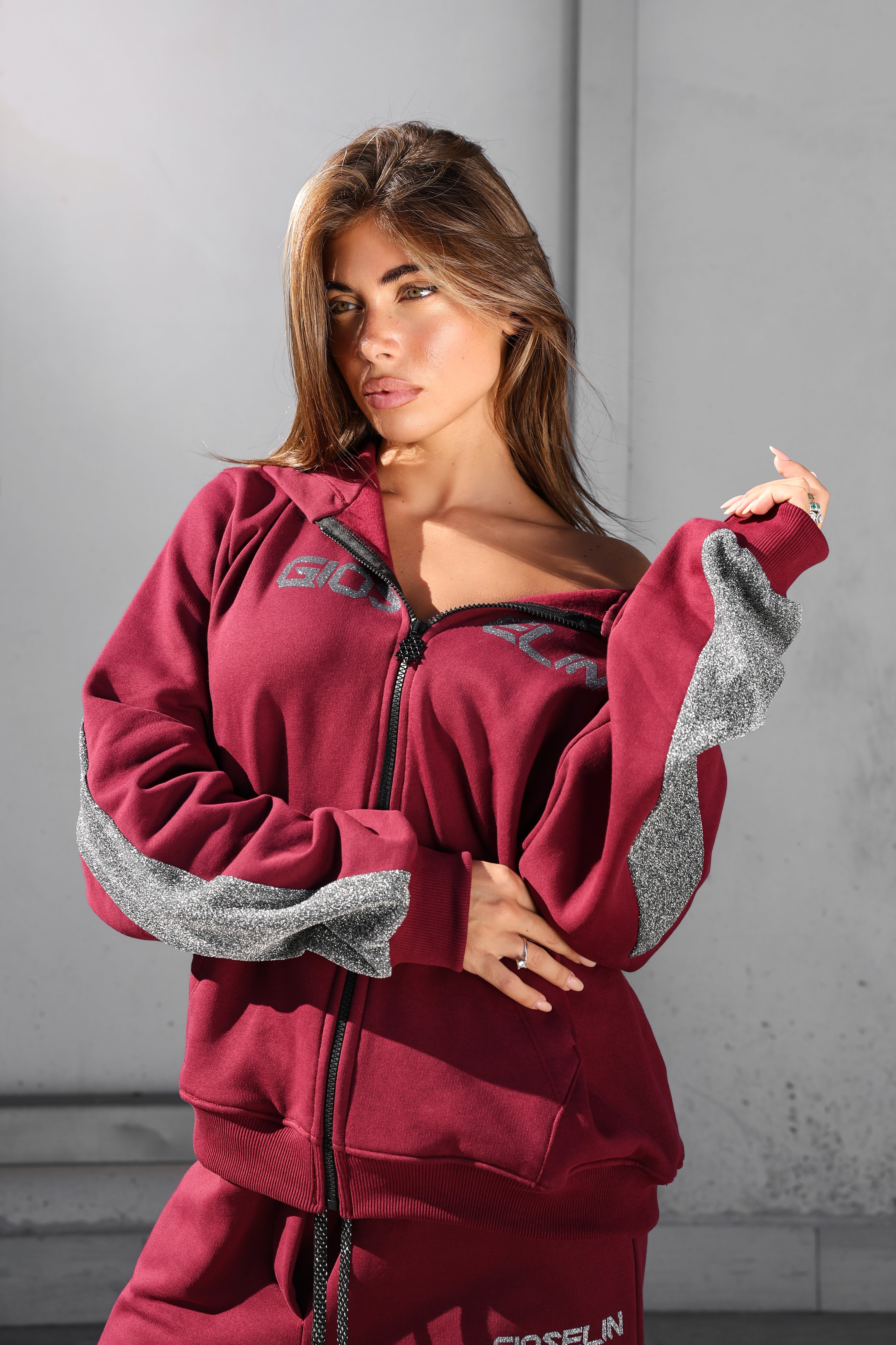 The Bordeaux Lurex Tracksuit is the new must-have from the Gioselin Winter collection, designed for those who want absolute comfort without sacrificing exclusive details. Crafted with a warm and enveloping fleece interior , it's ideal for the coldest days, maintaining impeccable style for every occasion.