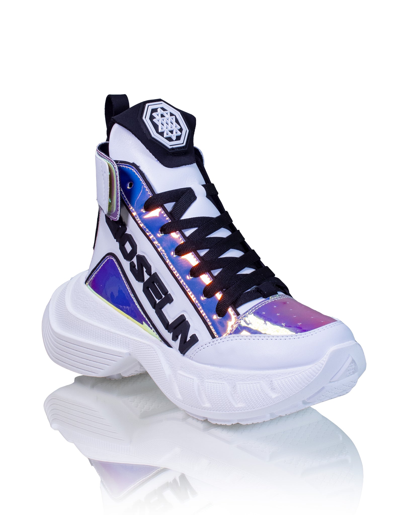 WHITE SNEAKERS WITH IRIDESCENT INSERTS
