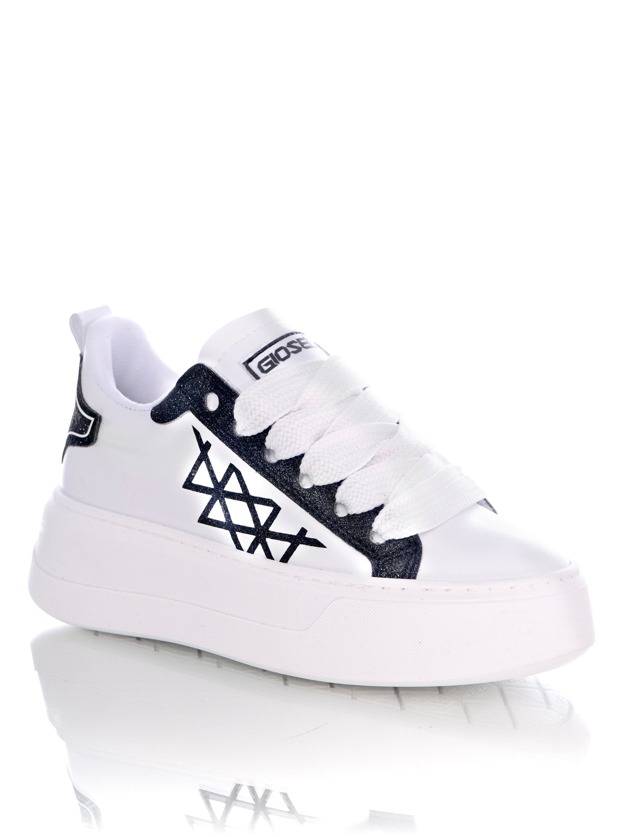 Und wir dürfen die funkelnden Details nicht vergessen, die Bridge einen Hauch von Magie verleihen. Mit zarten Glitzerdetails erstrahlt dieser Schuh in einer aufmerksamkeitsstarken Leuchtkraft, die Ihre mutige, einzigartige Persönlichkeit widerspiegelt. Gioselins unverwechselbares Logo, ein Symbol für kompromisslose Qualität und Stil, wird in ein glitzerndes Kunstwerk verwandelt und fachmännisch in den Schuh eingearbeitet.
