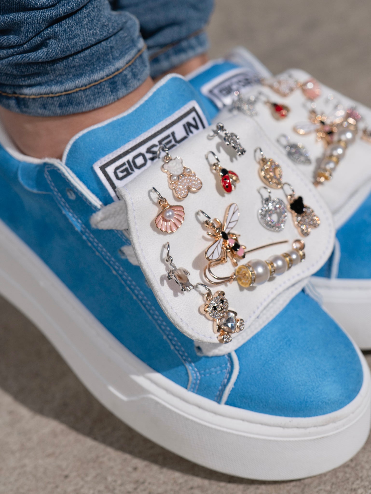 The heart of this exclusive model is the tongue with integrated charms , a bold and precious detail that conquers at first glance.