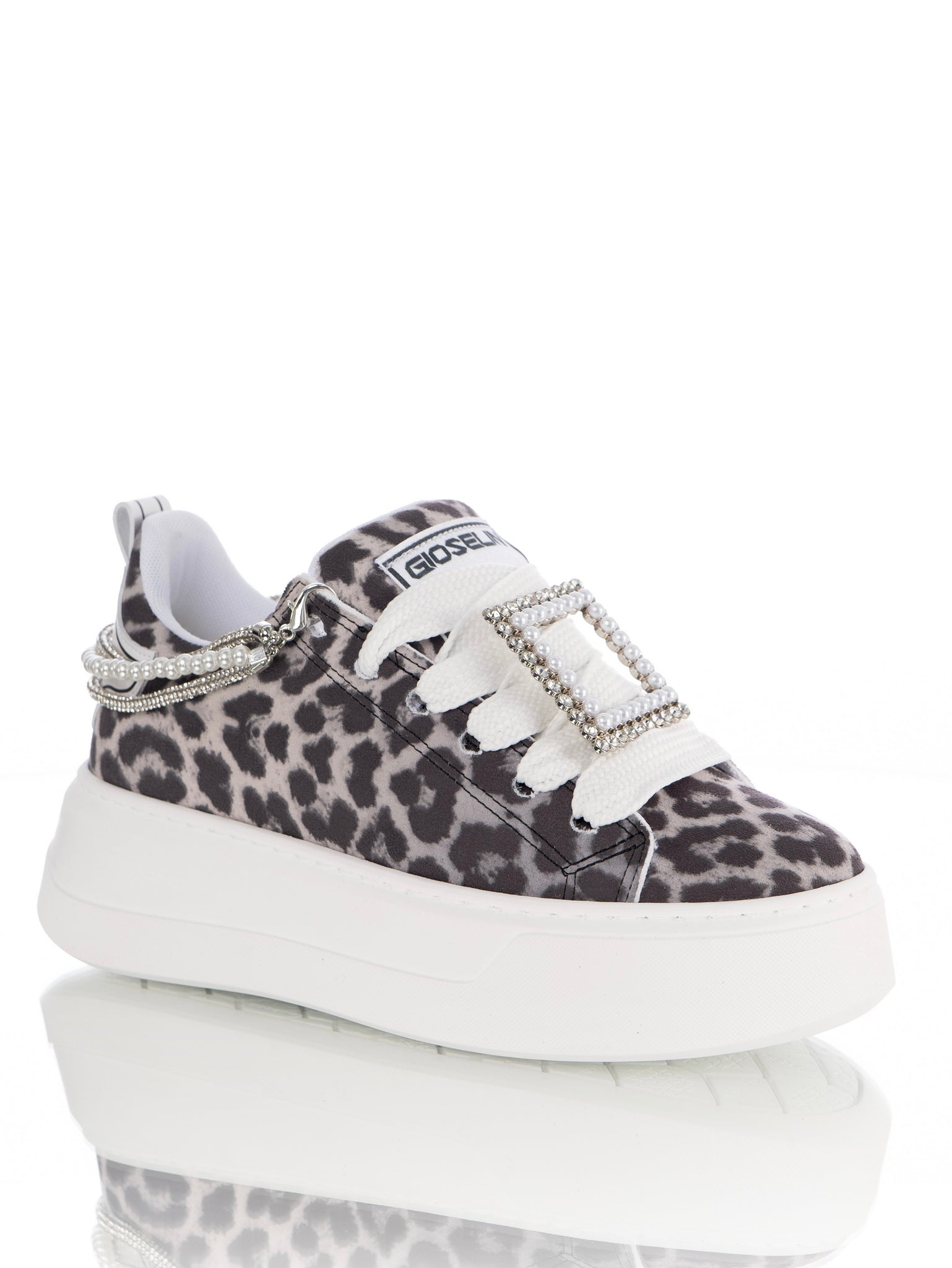 With the Pearl Animalier , Gioselin renews the concept of trendy footwear, combining the boldness of the animalier print with the delicacy of pearls and the brilliance of rhinestones. Discover the pleasure of wearing a shoe that combines comfort, style and versatility, making each of your outfits unique and unforgettable.