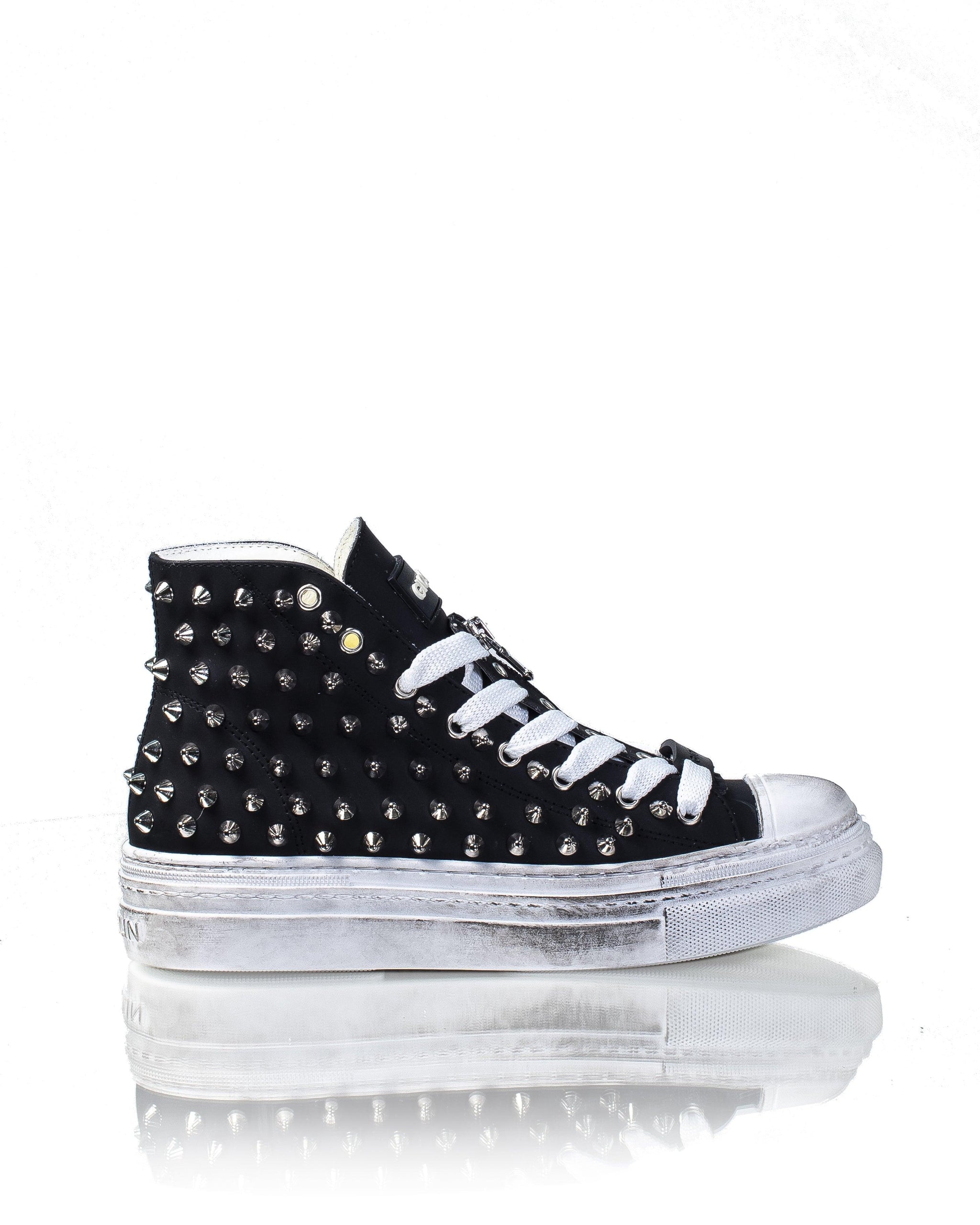 Sneakers are a must have in every wardrobe and with our high profile model, you can be sure to catch attention wherever you go. Convenient pull tabs make it easy to put on these shoes, saving you time in the morning. The lace-up design ensures a personalized fit, while the silver-colored Nikel studs add that touch of grit that makes the difference.