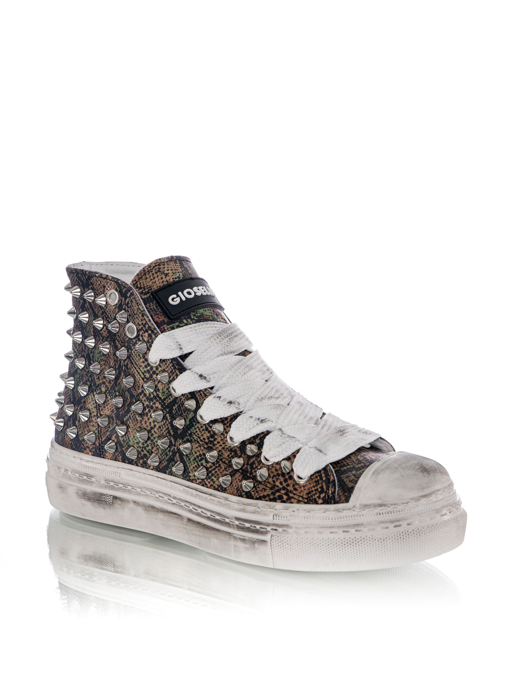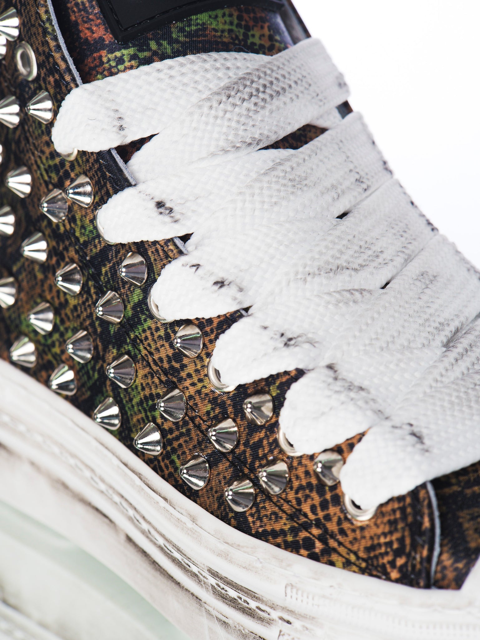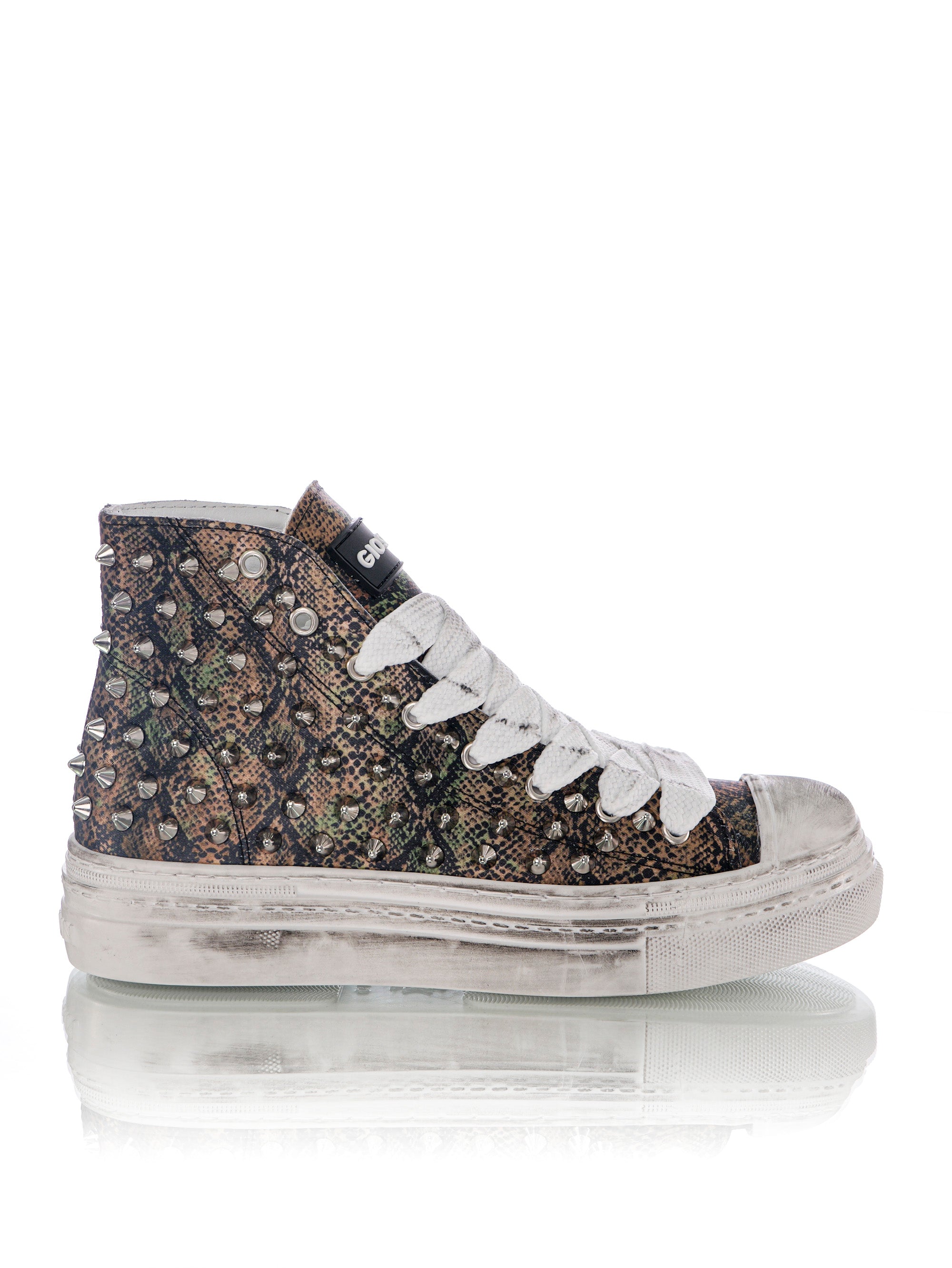 The "Play Pitonato" maintains the rebellious essence of the original version, with its unmistakable studs that give a bold and inimitable touch. However, in this new edition, the design has been enriched with a python texture, creating a visual effect that blends wild elegance and modern refinement.