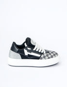 Immerse yourself in a galaxy of style with the SLIDE Galaxy , the sneaker that combines absolute lightness with an extraordinary aesthetic. The checkered pattern in silver and black glitter with purple highlights is reminiscent of a moving starry sky: dynamic, magnetic, hypnotic.