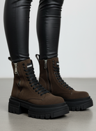 Il gambale alto 16 cm dona slancio e carattere al modello, accompagnato da una suola chunky di 8 cm che non solo aggiunge altezza ma regala anche stabilità e un tocco di potenza al look. La suola zigrinata antiscivolo è pensata per affrontare con sicurezza qualsiasi superficie, esprimendo al meglio la filosofia Gioselin: stile deciso, senza compromessi.