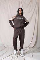 La felpa, con cappuccio e fascia elastica in vita, è arricchita dal logo Gioselin glitterato e dalle maniche con dettagli camouflage shine che donano luminosità e carattere. Il pantalone, con elastico in vita, completa il look unendo praticità e stile.